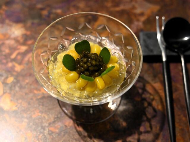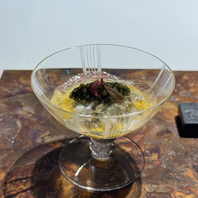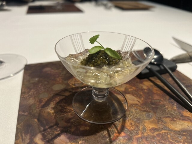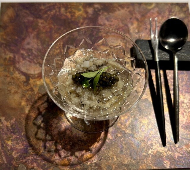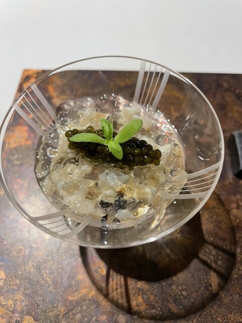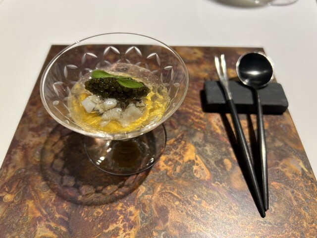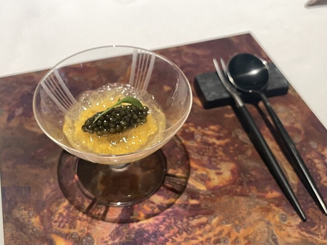 *コンソメのジュレ 鮑 バターナッツカボチャ キャビア