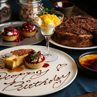 記念日に、誕生日に、お祝いごと etc... メッセージ付きデザートプレート☆ メッセージ、花火、お付け致します。デザインはお店の指定でご用意します。 (プレートへのご要望は受け付けかねます、ご了承ください。) 特別な1日を、ブルックリンカフェで過ごしませんか♪ ※こちらのコースはプレートのご用意があるため、ご予約の3日前まで受付しております。