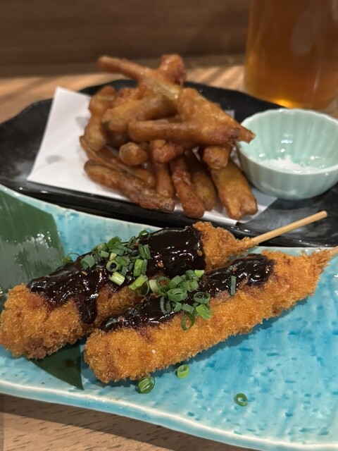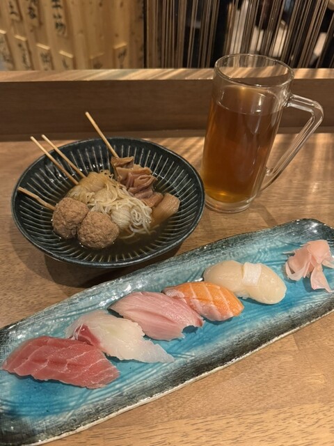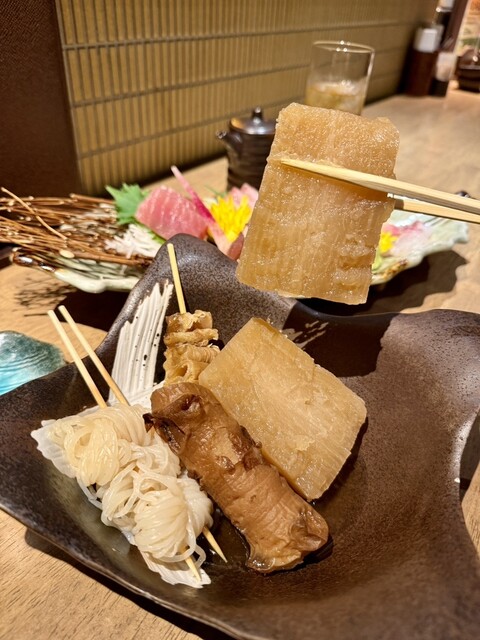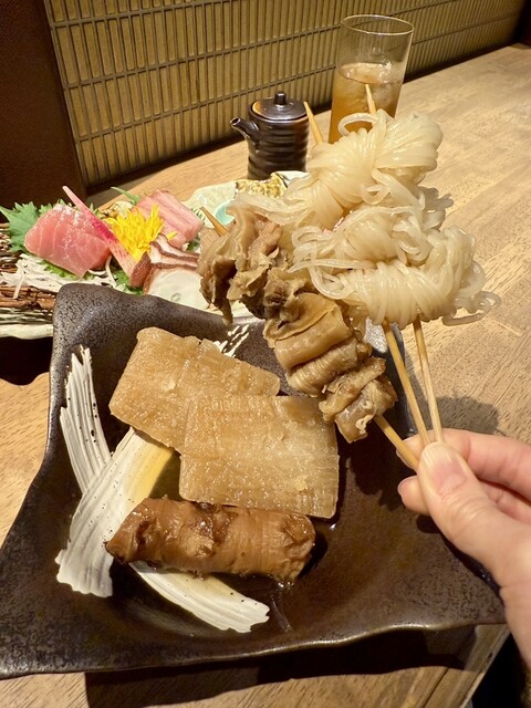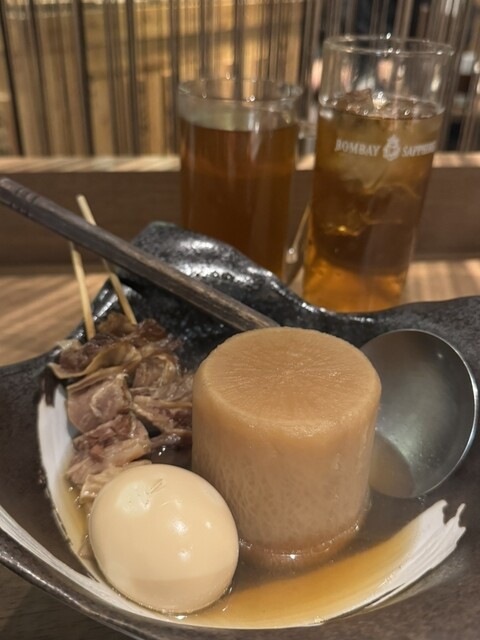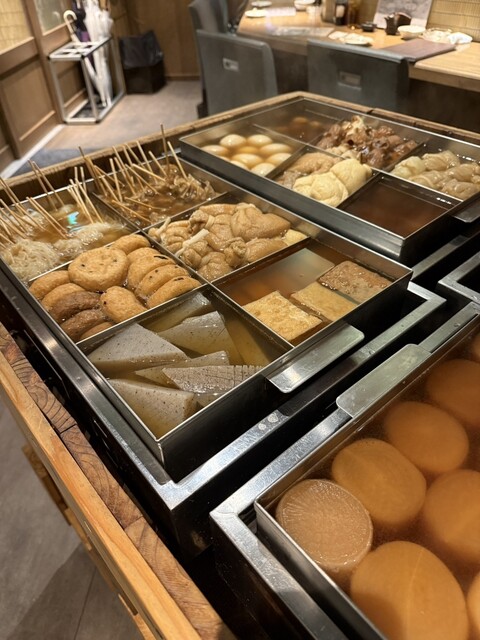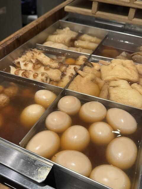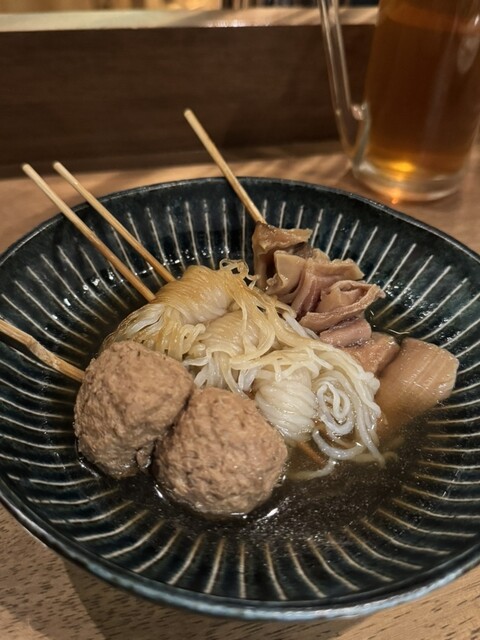 こちらのお店は、開店当初に行って美味しかったので、いつか友達と行きたくて♬ 念願かない行くことが出来ました。 おでんと、串もの数点に他・・・ お店の女の子におすすめされたのもチョイス♬ 生は4から5杯は飲んだかな(;'∀')飲み代がかさみました。 連れも私もよく飲むので、会計時に高いと言われて(-_-;) 飲み放題にすればよかったかな お店はとっても流行っていて活気がありました。 ... 詳細を見る