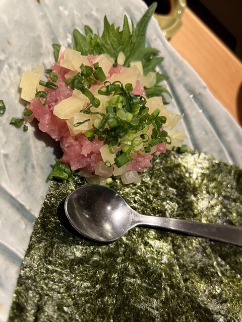 会社の同僚とご飯 日本酒が飲みたいとのことで、絶対信頼のこちらのお店 刺身は真鯛、中トロ?大トロ?すごいとろける いぶりがっことクリームチーズが最高のおつまみでした。 自家製のたこわさ サバを使った魚ーざ(餃子) 青魚の香りが強いこともなくサッパリ食べやすい餃子でした。 とろとろふんわりの名人技のだし巻き卵に 澤田酒造さんの白老 色々と楽しませて頂きました。 またお伺... 詳細を見る