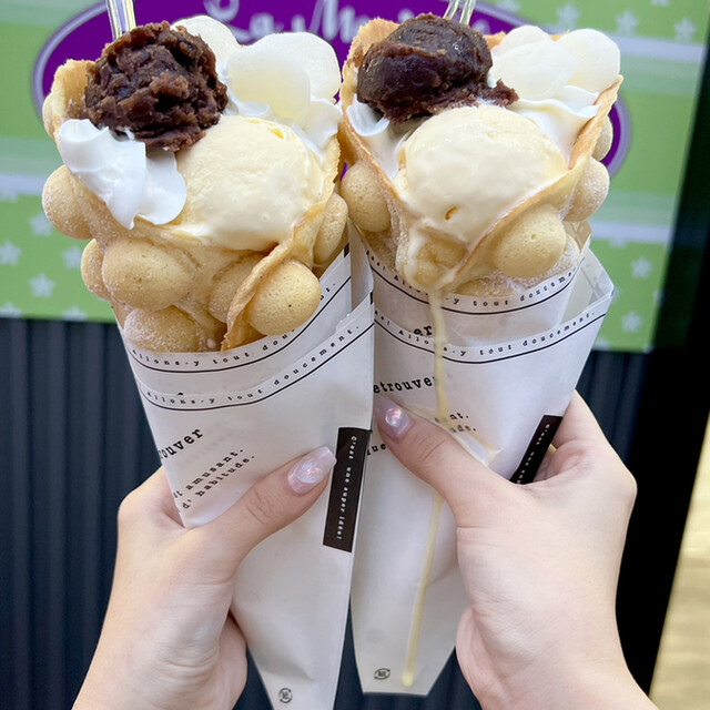 これ系のワッフルってあんまり美味しいイメージなかったけどここのワッフル美味しい!!注文してから生地を焼いてくれるので出来たて。サクサクふわふわで生地美味しい。ただ生地から作るのでかなりお時間かかりました。中にはクリーム、あんこ...