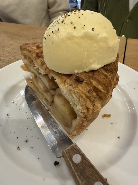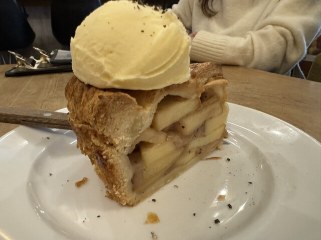 休日の午後3時ごろのおやつタイムとして予約してお伺いしました。 お目当てはストロベリーミルフィーユパフェ。 そしてマストのアップルパイをオーダー。 ドリンクは暑かったので私はアイスコーヒーに。 こちらの珈琲はしっかり美味しいタイプなので満足です。 待つこと20分程でパフェ、続い... 詳細を見る