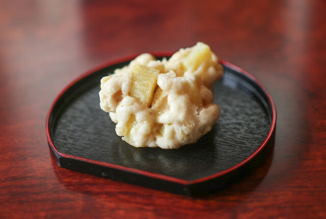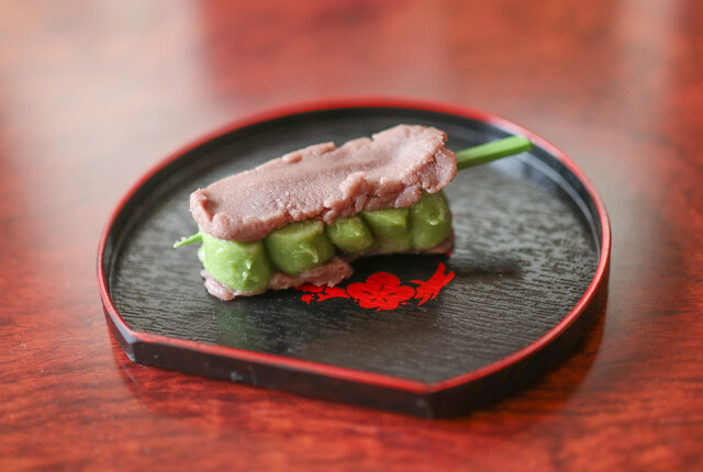 白餅は驚くほど柔らかく、噛む前に舌に寄り添うようなやさしい食感。上にのる餡は甘さ控えめで、これがまた絶...