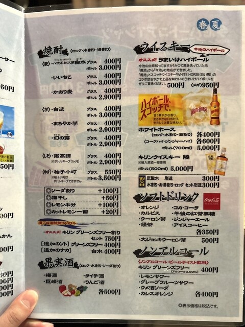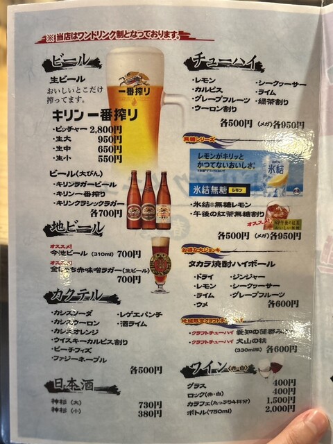 | ドリンク | 日本酒あり、焼酎あり、ワインあり、カクテルあり |
