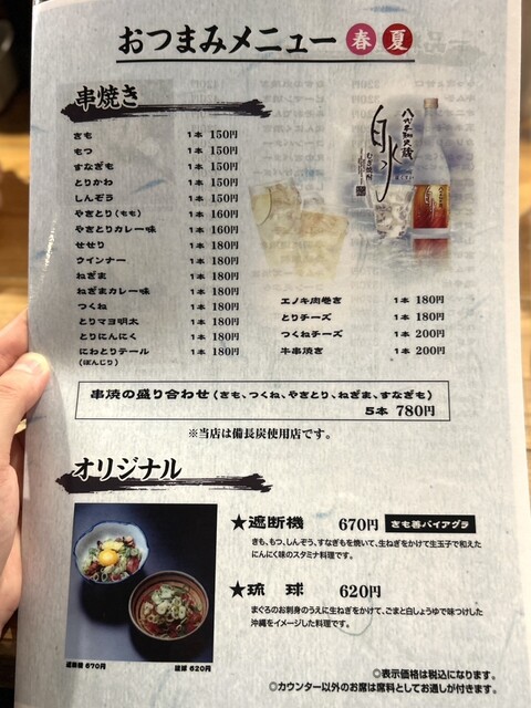 焼き鳥をはじめ、お刺身や揚げ物など