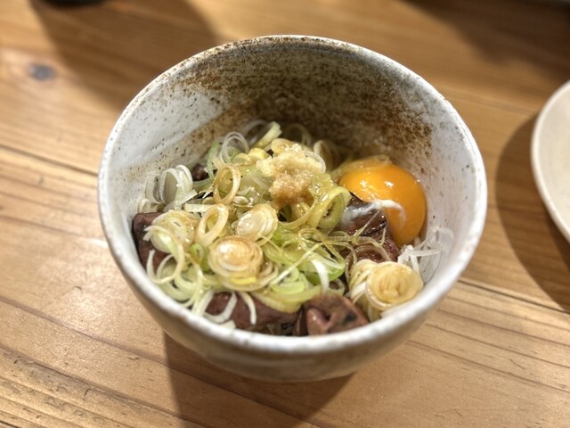 ニンニクダレとネギ、卵黄を合わせた