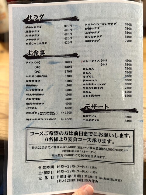 | サービス | 2時間半以上の宴会可 |