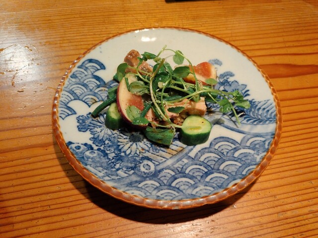 親の見守り定期帰省初日の夜は食べログ経由で予約したこちらへ。池下駅から徒歩3分程度の広小路通りに面した沿いにある。裏のコインPに車を停め、午後6時半に入店。店内はカウンター8席と奥にテーブル卓がいくつかあり、先客2組のいるカウンター席へ。