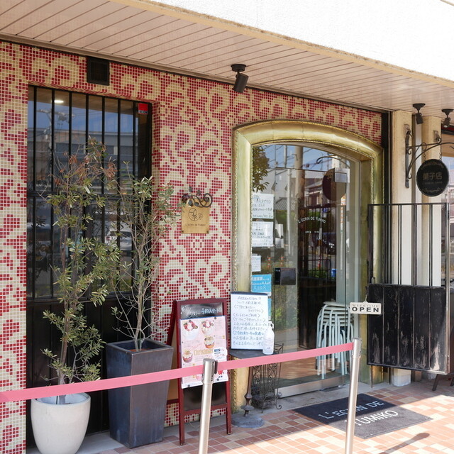 お席が42席に増え向かって左の赤い扉がパティスリー(テイクアウト)の入り口、右のガラスの扉がサロンドテ(イートイン)に分かれ、以前よりもスムーズにご利用いただけるようになりました。