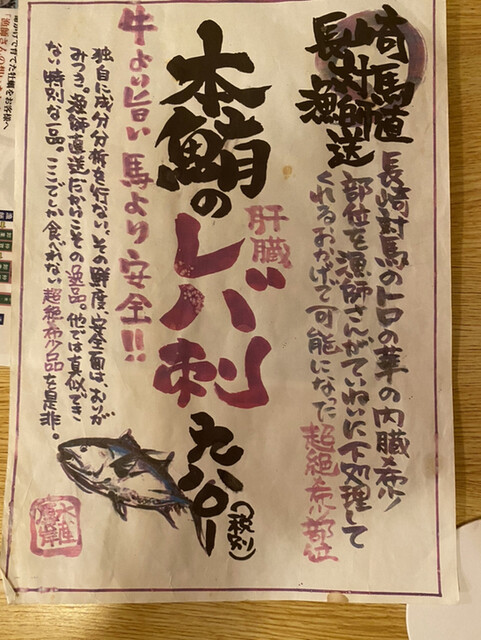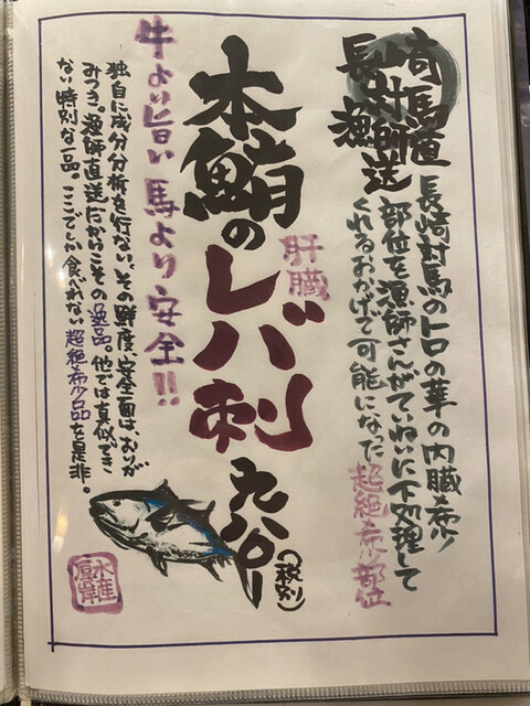 注文必須のまぐろのレバ刺し✨