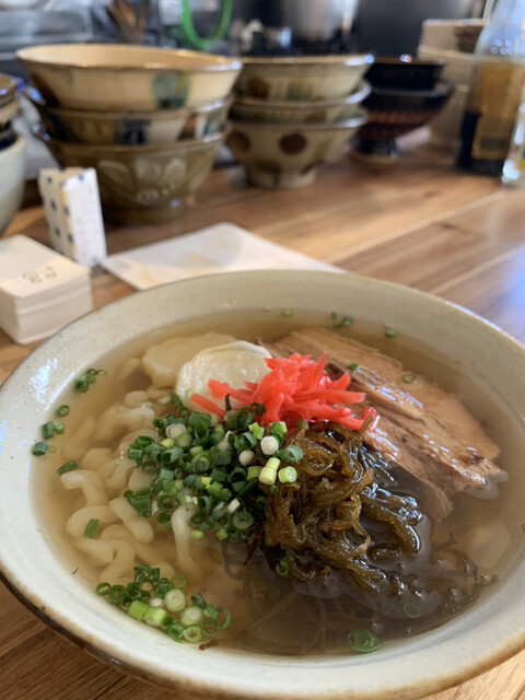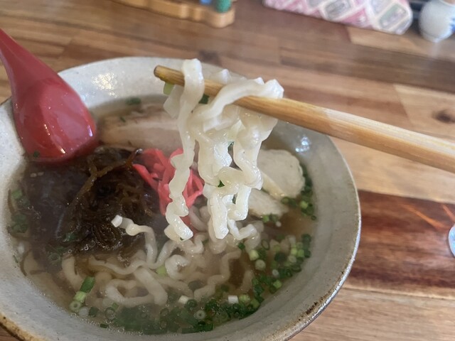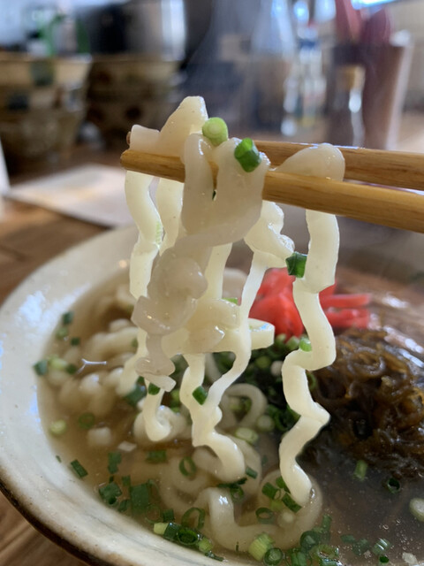 沖縄そばの麺は、ラーメンの麺と途中まで同じ製法らしいですが、最後の処理が違うので、独特の食感になるみたいです。