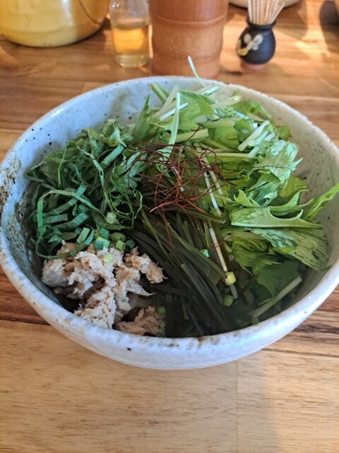 縮れ麺の太麺で、美味しかったです。
