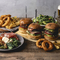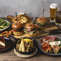 今年はバーガーで一年を締めくくってはいかがでしょう!! お食事のみの忘年会限定特別コース!! 豪華前菜盛り合わせ、サラダ、フライ盛り合わせ、選べるハンバーガーとデザートも付きます♫