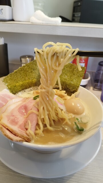 スープをひと口飲んだ瞬間、濃厚な鶏白湯の旨みがじわ〜っと体に染みてくる。