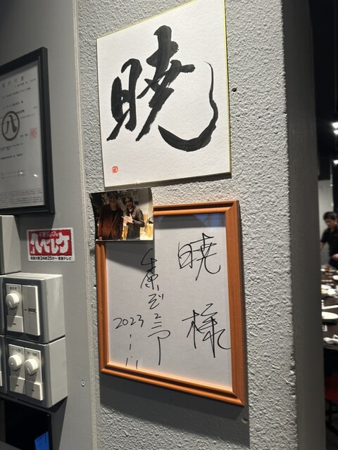 店内は黒×赤を基調にしたスタイリッシュな空間で、赤提灯や“暁”ロゴの映えスポットも完備。カウンターもテーブル席もあって、デ...