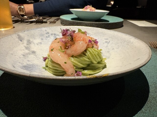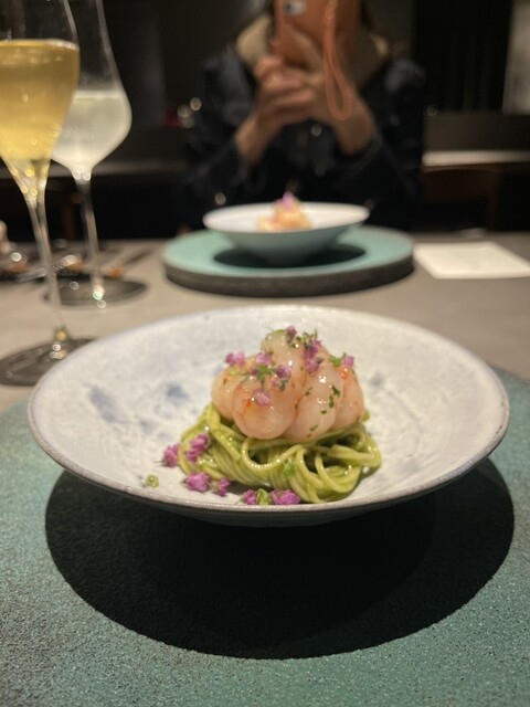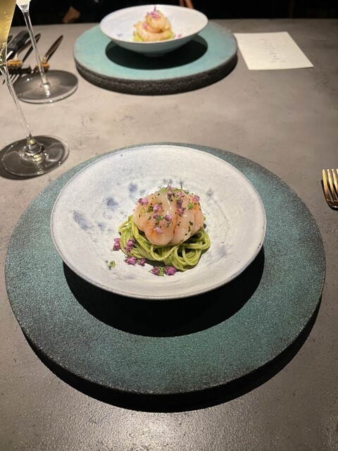 今回も一品目の甘海老の冷製パスタから最後のデザートまで最高でした。