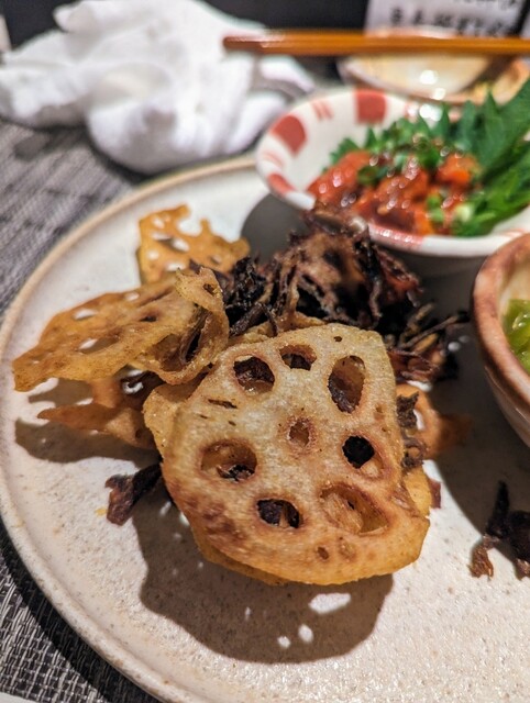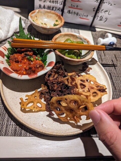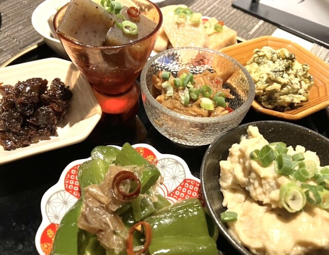 和食から中華まで本格的な料理をご提供している当店。おばんざいをはじめ、季節の野菜や鮮魚を使ったお料理を提供しております。串天ぷらや馬刺し、四川麻婆豆腐など、色々なメニューをお楽しみいただけます。日本酒は、季節酒を含めて常時25種類ほどご用意。こだわりのおちょこで様々な味わいを飲み比べて、お気に入りの一杯を見つけてください◎カウンターのみの落ち着いた店内は、お一人様での普段使いやデートにも最適です。