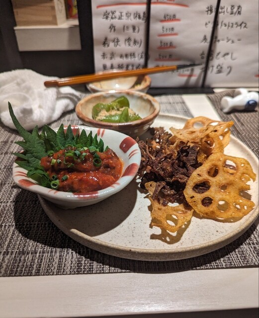 激レアサーモンフライ 980円 おばんざいちょこっと3種 690円 おちょこのポテトサラダ、茄子の焼き煮浸し、生ダコぴり辛チャンジャ じゃこおちょこ丼 390円 エビマヨ ... 詳細を見る