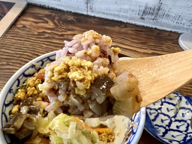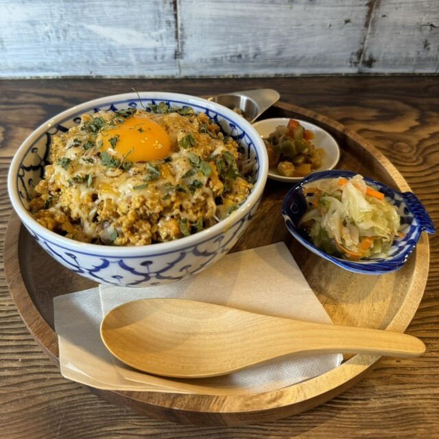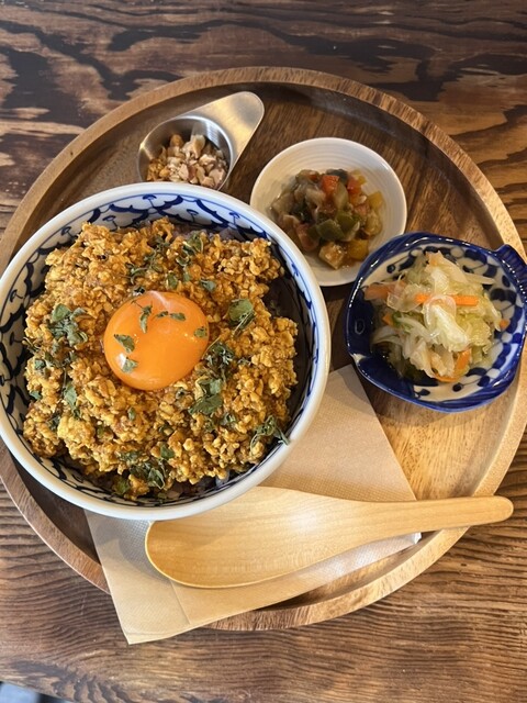 キーマカレー自体は、優しい味わいだが、チーズがを追加したので、少しジャンクな味わいで美味い。