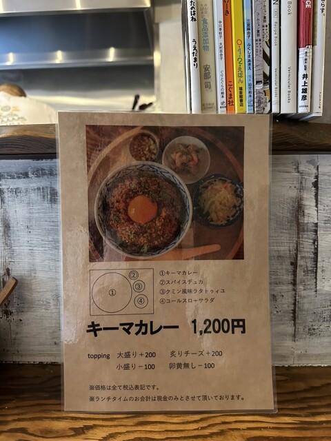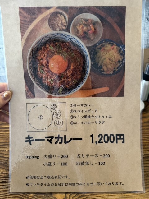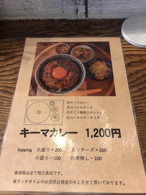 メニューは、キーマカレーのみでトッピングがありますが、炙りチーズをトッピングしました。