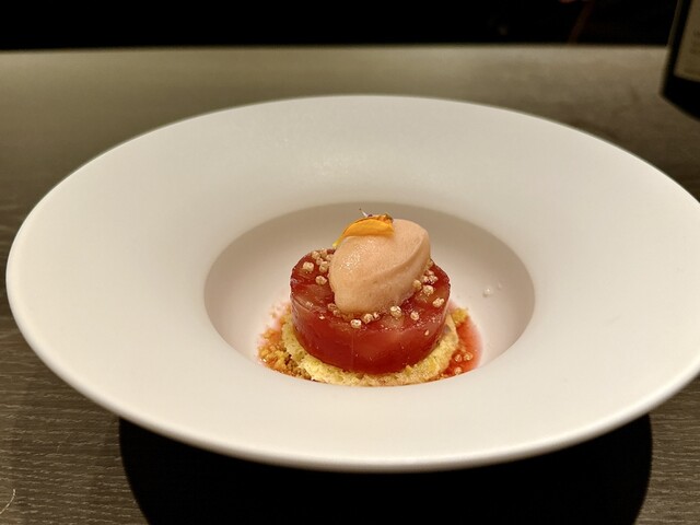 フランスでも修行経験のあるシェフによる、時季ならではの食材を使ったフレンチ。農家から仕入れた新鮮な有機野菜や市場から仕入れる鮮魚、飛騨牛や能登牛など選りすぐりの食材を使用しております。料理とのマリアージュが愉しめるソムリエ監修のワインのペアリングセットやノンアルコールのペアリングセットもご用意しました。半個室のようなカウンター席とテーブル席を完備。記念日など大切な方との特別なひと時におすすめです。