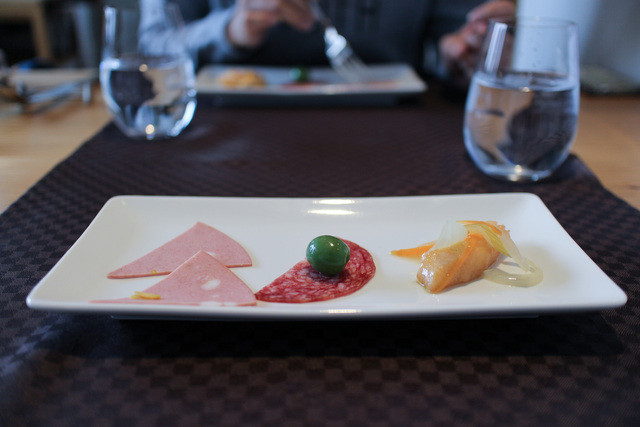 (前菜盛り合わせ、パスタ2種、小さなデザート、コーヒー)