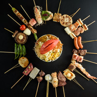 高級食材厳選鉄板串は全7種類、もんじゃ焼きは8種類の中から当日お選びいただけます。 2名様〜OK (6名様以上はお電話でご予約下さい) 飲み放題120分(Lo30分前)