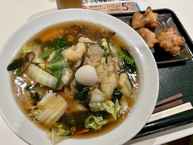 株式会社穂波が運営。 穂波はラーメン専門店も多数出店しており。 厚切りチャーシュー家』『蔵間』実績店なので安心。 オーダーは『天津飯』+『ミニ中華そば』のセット。... 詳細を見る