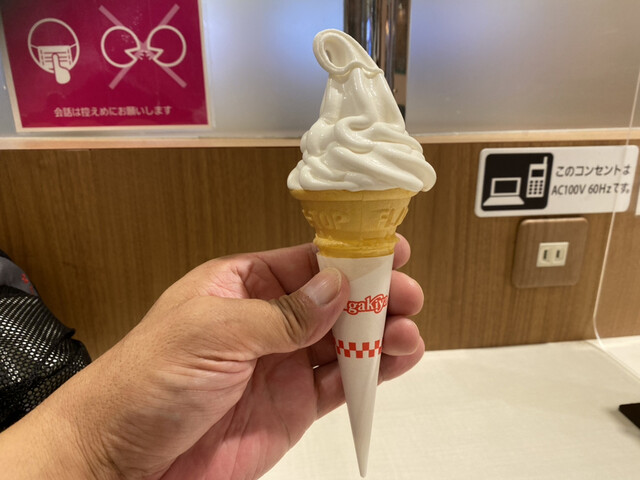 ラーメンをオーダーして、マルハチのクーポンでミニソフトクリームがサービスになります。