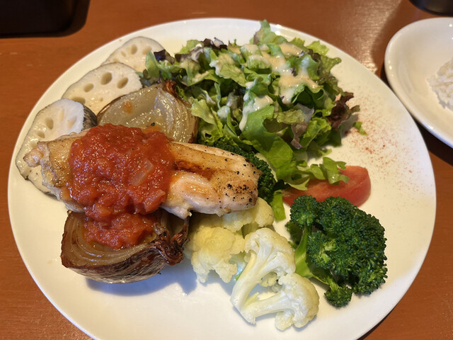 engi食堂ランチコース 1980円 お子様プレート 880円 この日の魚のメインはサーモンでした。 玄米入りご飯か米粉パンが選べます。 ●食事 スープは... 詳細を見る
