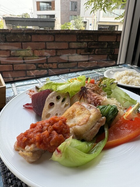 グルテンフリー、ヴィーガン対応している完全オーガニックのヘルシーカフェです! ウッド調の店内は温かくて、店員さんもとっても優しくて魅力的✨ 初来店でしたが、また行きたいカフェになりました! 今回いただいたのは ⭐︎ランチセット 1,870 メインが5つから選べるランチで、私はファラフェルに。 玄米ごはんか、米粉パンか選ぶことができます! 写真で見るよりかなりボリューム... 詳細を見る