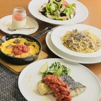 本日のメイン食材をお選びいただけます◎ 季節野菜のスープとミニデザート付きです。 ◎ドリンクセット(コーヒー・紅茶・ウーロン茶・有機ジュース(オレンジ、リンゴ) は+440円