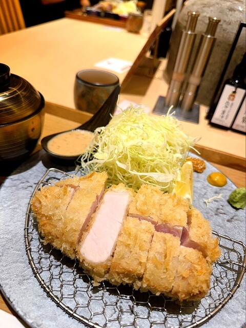 店内に入ってすぐ木の香りがしました。開店から1年ほど経っているようです。 料理や食べ方の説明を受けてからいただきました。 カツは最近流行の色白のとんかつ。中はうっすらピンク色。衣はサクサクでお肉は柔らかく食べやすい硬さ。 まず最初はお勧めの通り塩とわさびで。次はポン酢で。ソースやマスタードもあ... 詳細を見る