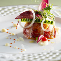 自然に囲まれた名古屋城を眺めながら食事ができる、最上階に位置するフレンチレストラン。供される料理は旬の食材を中心に、シェフ・鈴木氏の感性が光る料理をいただけます。素材本来の味を活かしつつ、多彩な食材と組み合わせることで生まれる新たな旨み。繊細な技で美しく飾られた料理は、一枚のプレートの上で麗しく輝き、まるで見る者を魅了する絵画のよう。窓から眺める名古屋城と季節の移ろいで姿を変える景色と共に、...
