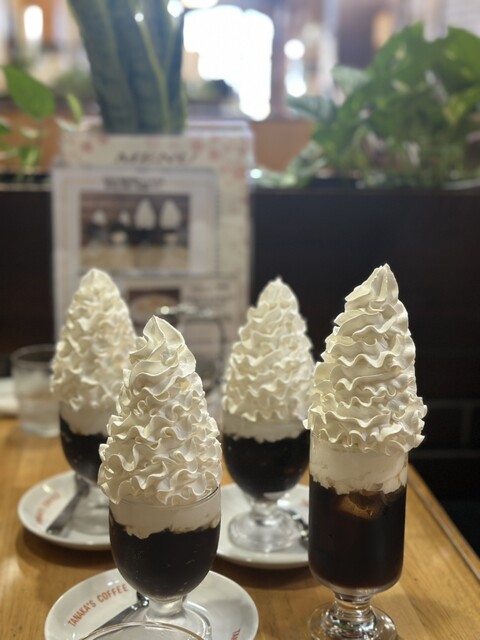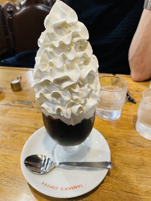 名古屋・上飯田にある老舗喫茶「カフェタナカ 御成店」で久しぶりに名物の**ウインナーコーヒーゼリー(900円)**をいただきました。