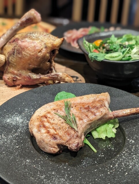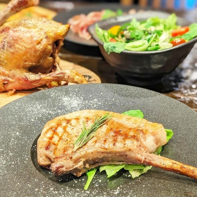 2024.9テレビ愛知「千原ジュニアの愛知あたりまえワールドで紹介されました! ・生ハムとロースト肉の盛り合わせ ・グリル肉の盛り合わせ 国産豚のトマホークステーキ+ 極太ソーセージ、仔羊のタン、鶏の丸焼き ・国産牛イチボステーキ120g 飲み放題の追加も可能です 電話確認の際、お伝え下さい