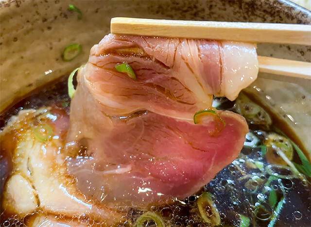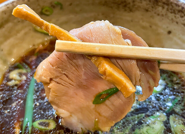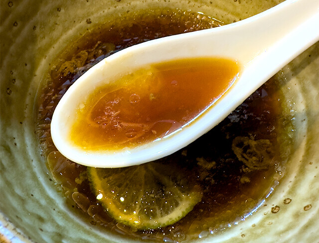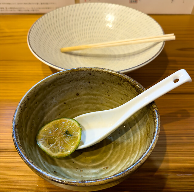 麺だけで食べたらそりゃ昆布水だからヌルヌルするわなと思いつつもちょっと嬉しくて何口か麺だけで食べました。卓上に調味料が何もなくて自信があるのだなと思いましたが、個人的感想では麺だけで食べる時にお塩を...