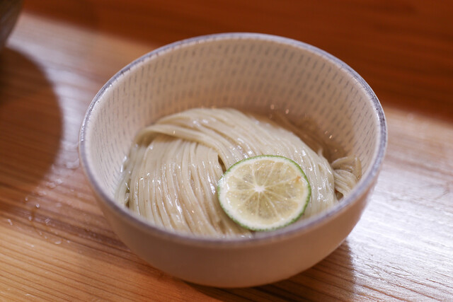 初めての昆布水に浸かった麺。綺麗で目にも楽しめます。