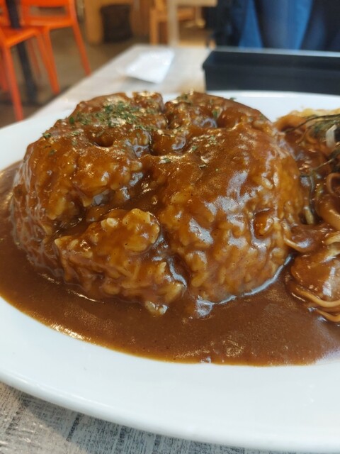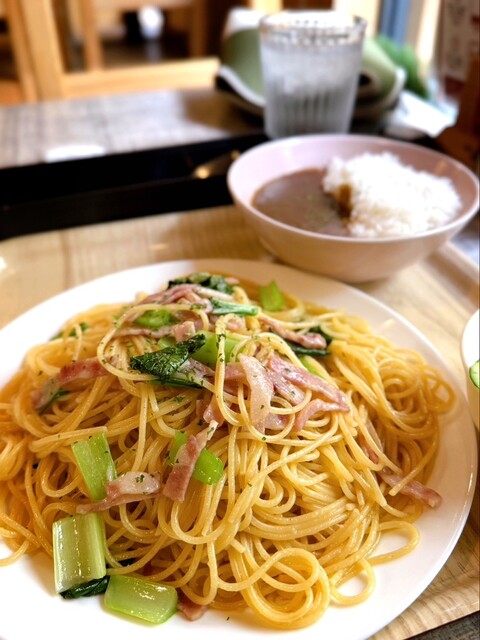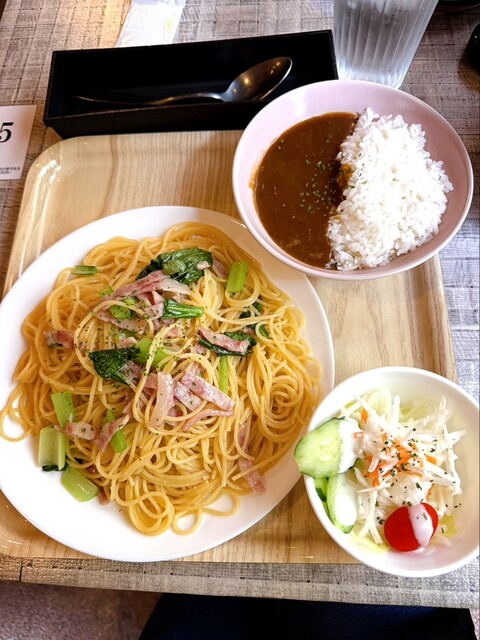もちろんデカ盛りとか絶対無理なので(^◇^;)パスタとカレーがセットになってる満足ランチをチョイス。