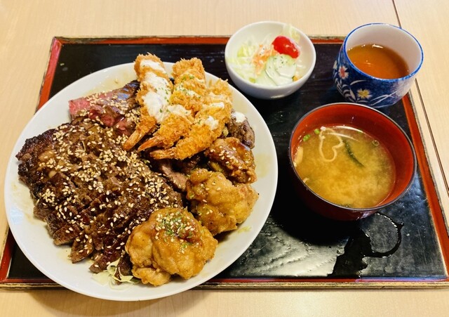 ランチで人気のステーキ丼を夜ご飯でも提供開始◎チャレンジ必須!衝撃の名物『デカ盛り』!!