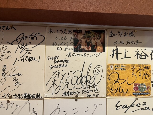 お久しぶりに「あいうえお」さんに伺いました♪ 中に入ると、普段サインを飾ってある場所の前に ディスプレイが増えていました♪イラスト入りの 可愛らしい色紙や、「あいうえお」さんが実際の 漫画に登場された16巻等が飾られています〜♡ うわーっこれはテンション上がる〜❣️ \(*ˊᗜˋ*)/ ... 詳細を見る