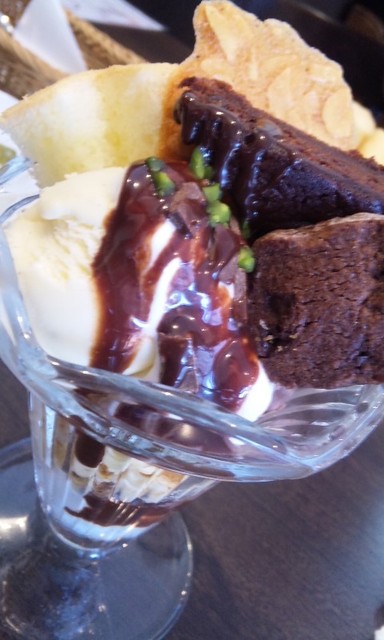 ブラウニーとかがのっているチョコレートパフェ♪