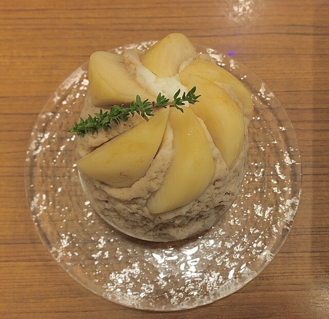 栗のかき氷とフルーツ盛りは添えをパンか迷い...