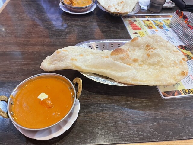 Cセットでカレーはバターチキンカレーの5辛(激辛)にナンそしてドリンクはラッシーを選択。 ここの最高辛さである5辛はCoCo壱の2辛より辛くないので辛いもの好きには物足りないかも... 詳細を見る