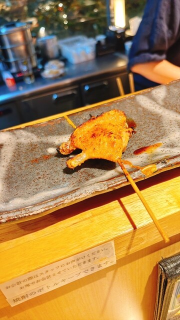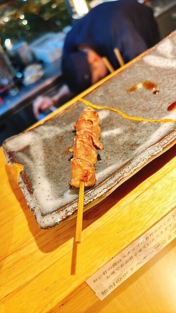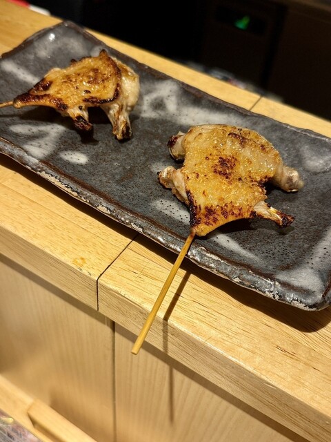 さして、きんぼし焼き、せせり、レバー、砂肝、せせり他を注文。きんぼし焼きは、味噌味で美味しい。焼き鳥は、美味しいが、残念なことにオーダー間違いが2回。1時間ちょっとしかいないのに、2回は多いと思うので、点数は低めに。