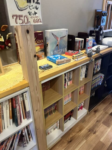 雑誌の取り置きがある他、2階には漫画の単行本、美術誌、ボードゲーム等を用意しており、ご自由にご利用いただけます |