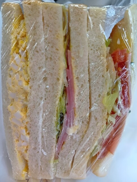 今回は ランチのために 購入しました。 ★ハムきゅうり 卵 トマトハム の3種が具がはみ出るほどのボリューミーなサンドイッチ パンはいつも お馴染みのやわらかい 風合... 詳細を見る