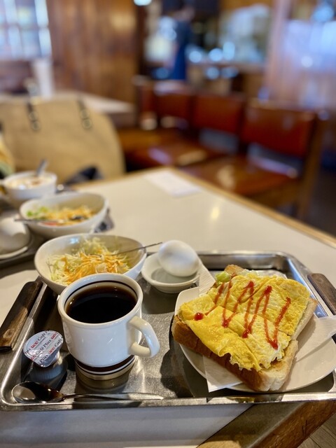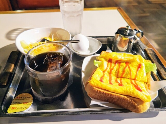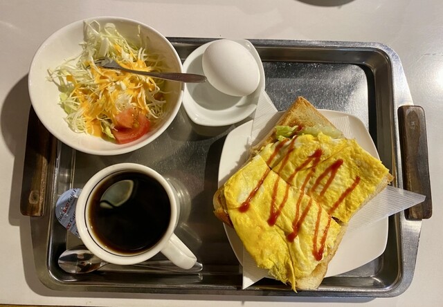 アイスコーヒー400円 モーニングBセット エッグトースト(飲み物・ゆで卵・サラダ付き)50円 無料のモーニングはトーストか、ゆで卵しか無いが、課金モーニングはトーストサラダ... 詳細を見る