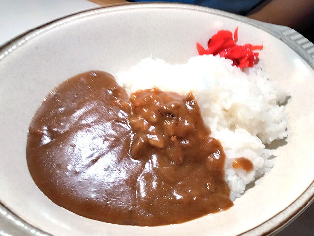 相方はカレーライスが小盛りにできるというので中食。良い香りが漂ってきます。とろみがついた昔ながらの喫茶店のカレーライス。求められるそのまんまの料理。