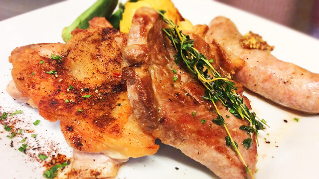 サルシッチャ、鶏モモ、豚肩のグリル (by お店)